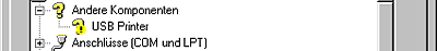 Wenn die Option EPSON USB-Druckergeräte nicht im Menü Geräte-Manager erscheint, klicken Sie auf das Pluszeichen (+) neben Andere Komponenten, um alle installierten Geräte anzuzeigen.