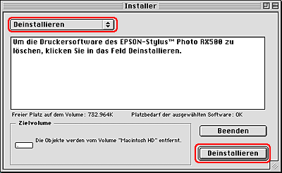 Wenn Sie das Gerät unter Windows Me oder 98 am USB-Port anschließen, müssen Sie eine etwaige zusätzliche USB-Komponente deinstallieren. Wählen Sie im Utility Programme hinzufügen/entfernen aus der Liste die Option EPSON USB-Drucker aus und klicken Sie dann auf die Schaltfläche Hinzufügen/Entfernen. Klicken Sie anschließend auf OK, wenn Sie in einer Meldung aufgefordert werden, den Computer neu zu starten. Wenn der EPSON USB-Drucker nicht im Utility Programme hinzufügen/entfernen erfasst ist, greifen Sie auf die Software-CD-ROM zu und doppelklicken Sie auf EPUSBUN.EXE. Führen Sie dann die angezeigten Anweisungen aus.
