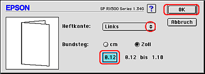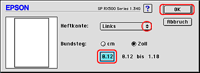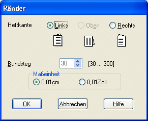 Legen Sie die Breite des Bindungsrands im Textfeld fest. Sie können eine beliebige Breite zwischen 0,12 und 1,18 Zoll bzw. 0,3 und 3,0 cm eingeben.