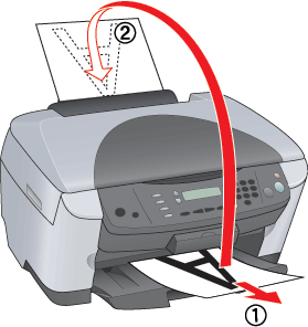 Beachten Sie die Anweisungen am Bildschirm zum erneuten Einlegen des Papiers oder legen Sie das Papier, wie in der Abbildung unten dargestellt, erneut ein.