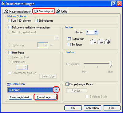 Mit der Funktion Wasserzeichen drucken können Sie ein textbasiertes oder ein bildbasiertes Wasserzeichen auf das Druckmedium drucken.