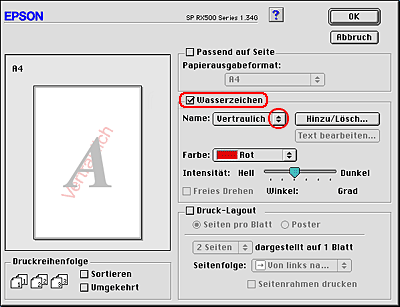 Aktivieren Sie das Kontrollkästchen Wasserzeichen im Dialogfeld Layout und wählen Sie dann das gewünschte Wasserzeichen aus der Namensliste aus.