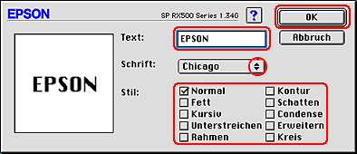 Stellen Sie sicher, dass Sie das gewünschte Wasserzeichen in der Liste Wasserzeichen ausgewählt haben, und führen Sie dann die Einstellungen für Farbe, Position, Dichte, Größe, Schriftart, Schriftstil und Winkel durch. Nähere Informationen finden Sie in der Online-Hilfe. Die von Ihnen ausgewählten Einstellungen werden links im Dialogfeld angezeigt.