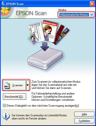 Starten eines Scan-Vorgangs mit EPSON Scan