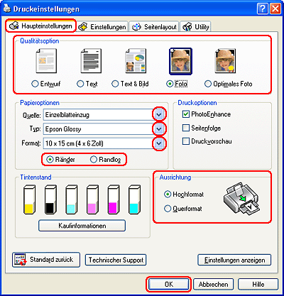 Klicken Sie auf OK, um das Dialogfeld "Druckereinstellungen" zu schließen.