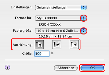 Wählen Sie die geeignete Papierformat-Einstellung.