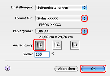 Achten Sie darauf, dass Ihr Drucker als Format für ausgewählt ist.