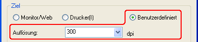 Wahl der Scan-AuflösungIm Standard Modus können Sie die Auflösung nur ändern, wenn Sie als Ziel-einstellung Benutzerdefiniert gewählt haben.
