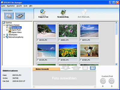 Wenn Sie den Scan-Vorgang vom Epson File Manager aus gestartet haben, werden im Epson File Manager-Fenster Vorschaubilder der gescannten Bilder angezeigt.