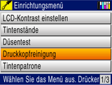 Wenn am LCD-Display eine Meldung angezeigt wird, die zum Austauschen einer Tintenpatrone auffordert oder einen geringen Tintenstand anzeigt, kann der Druckkopf nicht gereinigt werden. Tauschen Sie in diesem Fall zuerst die entsprechende Tintenpatrone aus.