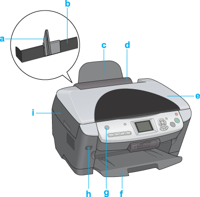 c. Papierstütze: Stützt das in den Einzelblatteinzug eingelegte Papier.