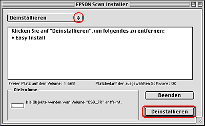 ![]() | Wählen Sie aus dem Pulldown-Menü oben links die Option Deinstallieren aus und klicken Sie dann auf Deinstallieren. |
