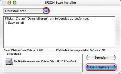 Informationen zum Deinstallieren von Epson Scan finden Sie weiter unten im entsprechenden Abschnitt.