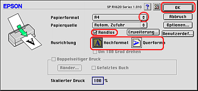 Nehmen Sie die erforderlichen Einstellungen für das Papierformat ohne Rand vor.