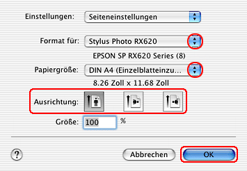Wählen Sie Stylus Photo RX620 als Einstellung für Format für aus.