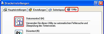 Öffnen Sie den Druckertreiber, klicken Sie auf die Registerkarte Utility und anschließend auf die Schaltfläche Status Monitor 3.