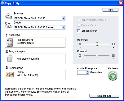 Mit EPSON Copy Utility können Sie das Multifunktionsprodukt als Kopierer einsetzen.