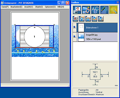 Klicken Sie auf Start, zeigen Sie auf Alle Programme (Windows XP) bzw. Programme (Windows Me, 98 und 2000), zeigen Sie auf EPSON PRINT Image Framer und PIF DESIGNER und klicken Sie dann auf PIF DESIGNER.
