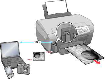 Der optionale Bluetooth Photo Print Adapter ist ein drahtloses Kommunikationsmodul, das an dieses Gerät angeschlossen wird, so dass Digitalkameras und andere Geräte mit drahtloser Bluetooth-Technologie ohne Kabelverbindung drucken können.