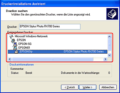 Wählen Sie Netzwerkdrucker aus und klicken Sie anschließend auf Weiter.