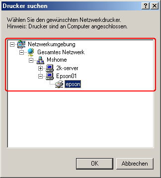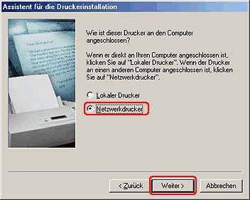 Unter Windows 2000 wählen Sie Netzwerkdrucker aus und klicken Sie anschließend auf Weiter.