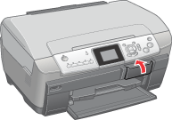 Vergewissern Sie sich, dass alle Druckaufträge beendet sind und die Speicherkarten-Kontrollleuchte nicht blinkt.