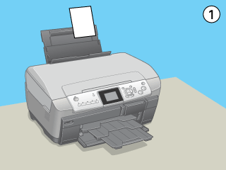 ![]() | Ziehen Sie das Papierausgabefach heraus und ziehen Sie die Verlängerung heraus. |