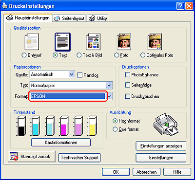 Sie können auch ein eigenes Papierformat definieren und der Liste hinzufügen.