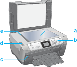 c. Tintenpatronenabdeckung: Hält die Tintenpatronen an ihrem Platz.