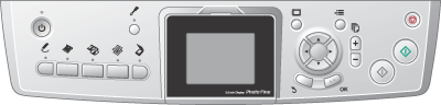Hier werden eine Vorschau der gewählten Bilder, Optionen oder Einstellungen, die mit den Tasten geändert werden können, sowie Fehlermeldungen angezeigt. Informationen zu den Fehlermeldungen finden Sie unter Fehlermeldungen.