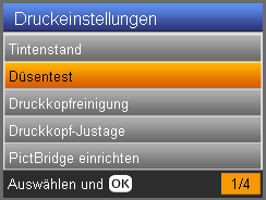 ![]() | Überprüfen Sie die Meldungen auf dem LCD und drücken Sie dann die Taste OK, um den Düsentest zu starten. |