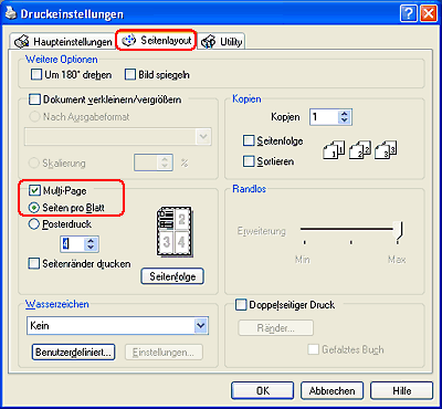 Nehmen Sie die nachstehenden Einstellungen für Seiten pro Blatt vor.