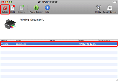 Clear, um einen laufenden Druckauftrag abzubrechen.