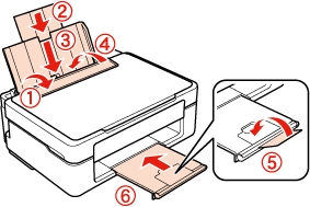 Drehen Sie den Papiereinzugsschutz nach vorne, schließen Sie die Papierstütze und drehen Sie dann den Papiereinzugsschutz nach hinten und schließen dann das Ausgabefach.