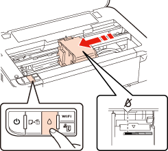 Μόλις ολοκληρωθεί η υπόδειξη όλων των άδειων ή σχεδόν άδειων δοχείων μελανιού, η κεφαλή εκτύπωσης μετακινείται στη θέση αντικατάστασης δοχείου μελανιού, όταν πατήσετε το κουμπί  .