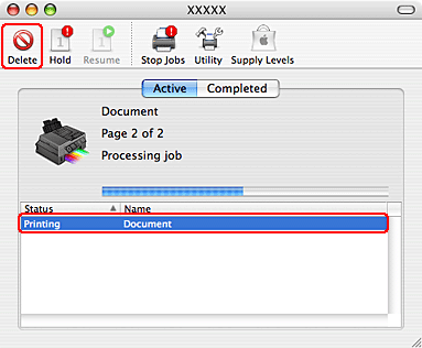 Κάντε κλικ στο κουμπί Delete (Διαγραφή) για να ακυρώσετε την εργασία εκτύπωσης.