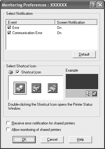Η προειδοποίηση για σφάλµατα σε έναν κοινόχρηστο εκτυπωτή λαµβάνεται όταν είναι ενεργοποιηµένο αυτό το πλαίσιο επιλογής.