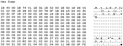 Εάν οι χαρακτήρες είναι εκτυπώσιμοι, εμφανίζονται στη δεξιά στήλη ως χαρακτήρες ASCII. Μη εκτυπώσιμοι χαρακτήρες, όπως κωδικοί ελέγχου, εμφανίζονται ως κουκκίδες. Συγκρίνοντας τους χαρακτήρες που εκτυπώνονται στη δεξιά στήλη με την εκτύπωση των δεκαεξαδικών κωδικών, μπορείτε να ελέγξετε τους κωδικούς που λαμβάνει ο εκτυπωτής.