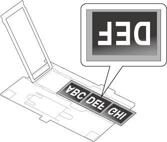 Τοποθετήστε μέχρι τέσσερις διαφάνειες στο φορέα φιλμ με τη γυαλιστερή πλευρά προς τα κάτω. Οι εικόνες πρέπει να εμφανίζονται ανάποδα στην πλευρά που είναι στραμμένη προς τα πάνω. Οι εικόνες πρέπει να εμφανίζονται όπως φαίνεται στην εικόνα.