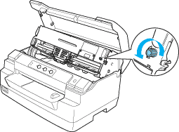 Στρέψτε το κουμπί που τεντώνει τη μελανοταινία για να τοποθετηθεί η μελανοταινία στη σωστή θέση.