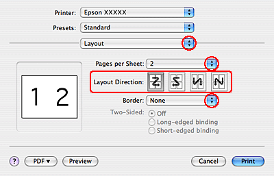 Επιλέξτε από τις παρακάτω ρυθμίσεις για εκτύπωση με τη δυνατότητα Pages Per Sheet (Σελίδες ανά φύλλο):
