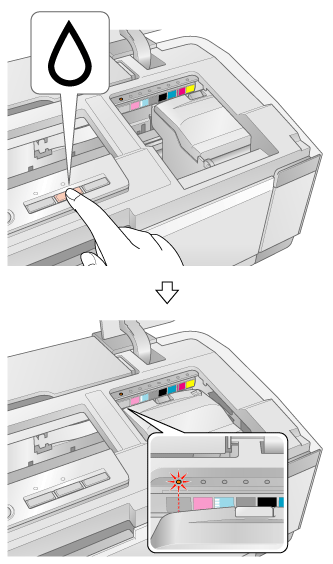 σταματά να αναβοσβήνει και παραμένει αναμμένη και η φωτεινή ένδειξη μελανιού σβήνει.![]() Προσοχή: