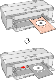 Τοποθέτηση ενός δίσκου CD/DVDΕκτελέστε την ακόλουθη διαδικασία για να εισαγάγετε ένα δίσκο CD/DVD στον εκτυπωτή αυτό.