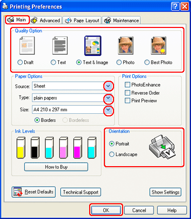 Κάντε κλικ στην καρτέλα Main (Κύριο) και, στη συνέχεια, επιλέξτε μια από τις παρακάτω ρυθμίσεις Quality Option (Τύπος ποιότητας):