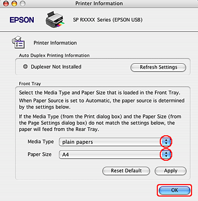 Για Mac OS X: οι ρυθμίσεις πλαισίων διαλόγου Page Setup (Διαμόρφωση σελίδας) και Print (Εκτύπωση) και οι ρυθμίσεις Printer Information (Πληροφορίες για τον εκτυπωτή).