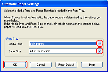 Εάν επιλέξετε αυτή τη ρύθμιση, η τροφοδοσία χαρτιού γίνεται από τη μπροστινή κασέτα χαρτιού, εάν ταιριάζουν οι παρακάτω ρυθμίσεις.