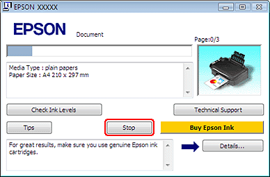 Κάντε κλικ στο κουμπί Stop (Διακοπή) για να ακυρώσετε την εκτύπωση.