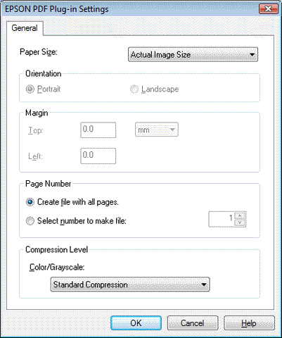 Για άλλες ρυθμίσεις στο παράθυρο EPSON PDF Plug-in Settings (Ρυθμίσεις της προσθήκης EPSON για αρχεία PDF), ανατρέξτε στη βοήθεια Epson Scan για λεπτομέρειες.