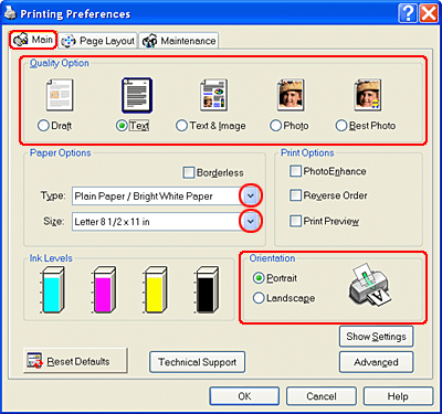 Click the Main tab, then make the Quality Option setting. For details, see online help.
