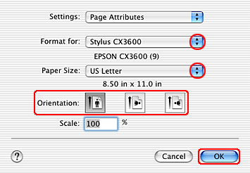 Make the Printer setting so that it matches the Format for setting you made in the Page Setup dialog box in step 3. Then make the Copies & Pages settings.